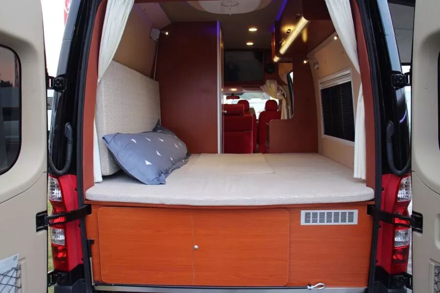 后排生活區(qū)采用超大式的多人床,休息時可同時在床上容納兩到三人。